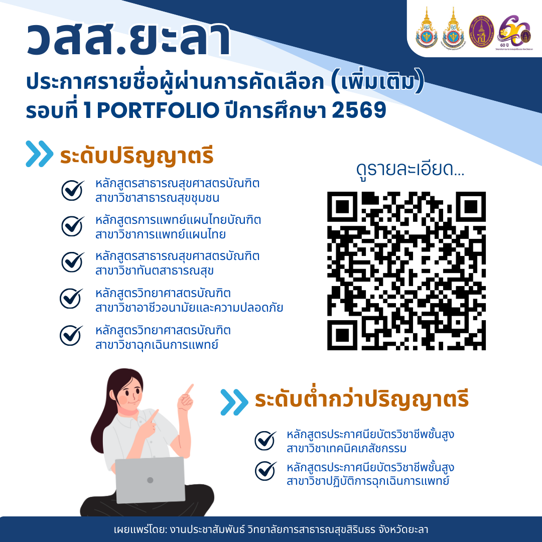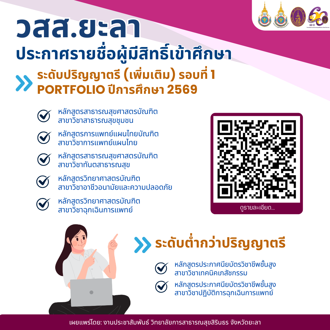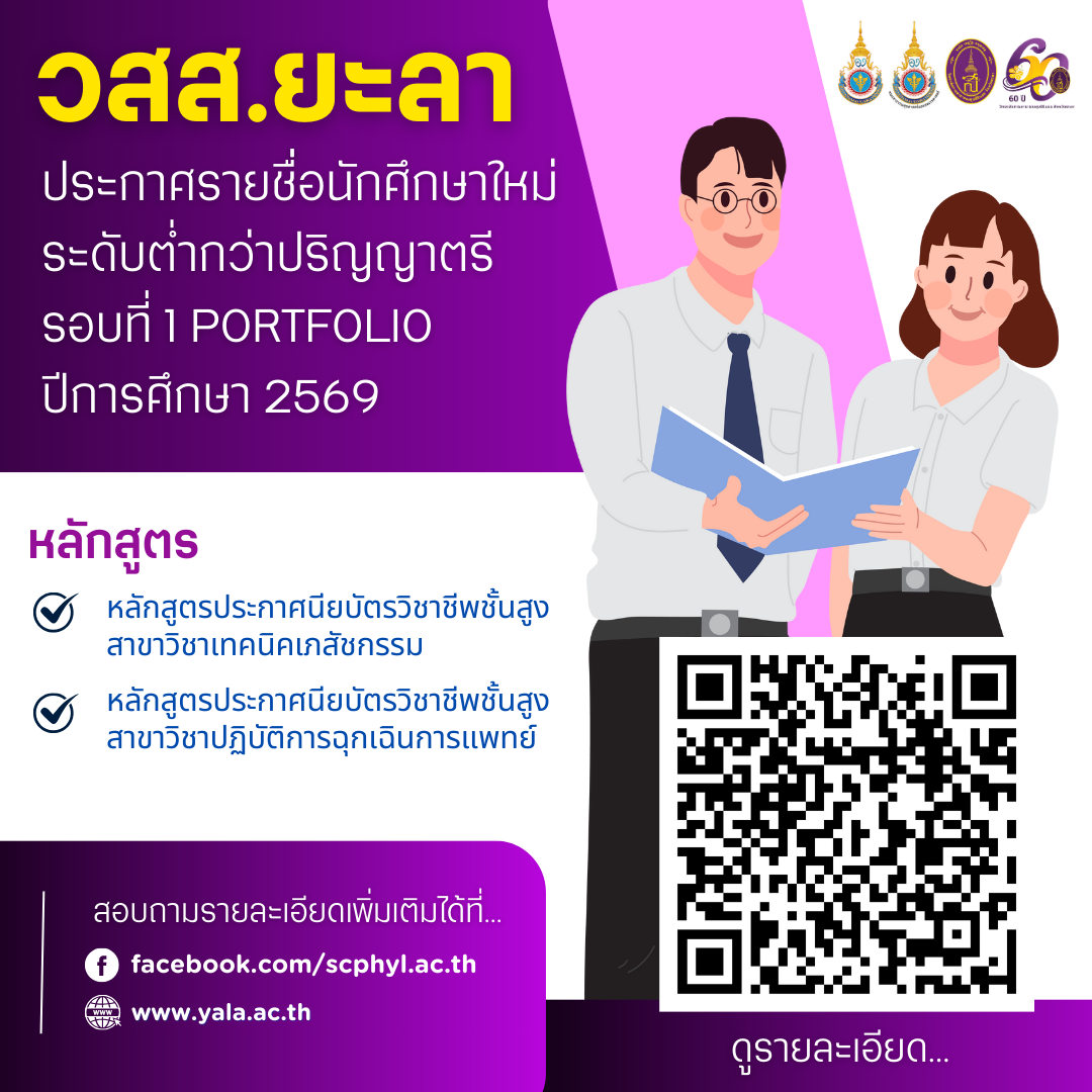 ข่าวการศึกษา ประกาศรายชื่อนักศึกษาใหม่ ระดับต่ำกว่าปริญญาตรี รอบที่ 1 Portfolio ปีการศึกษา 2569 อ่านต่อ » ธันวาคม 23, 2025